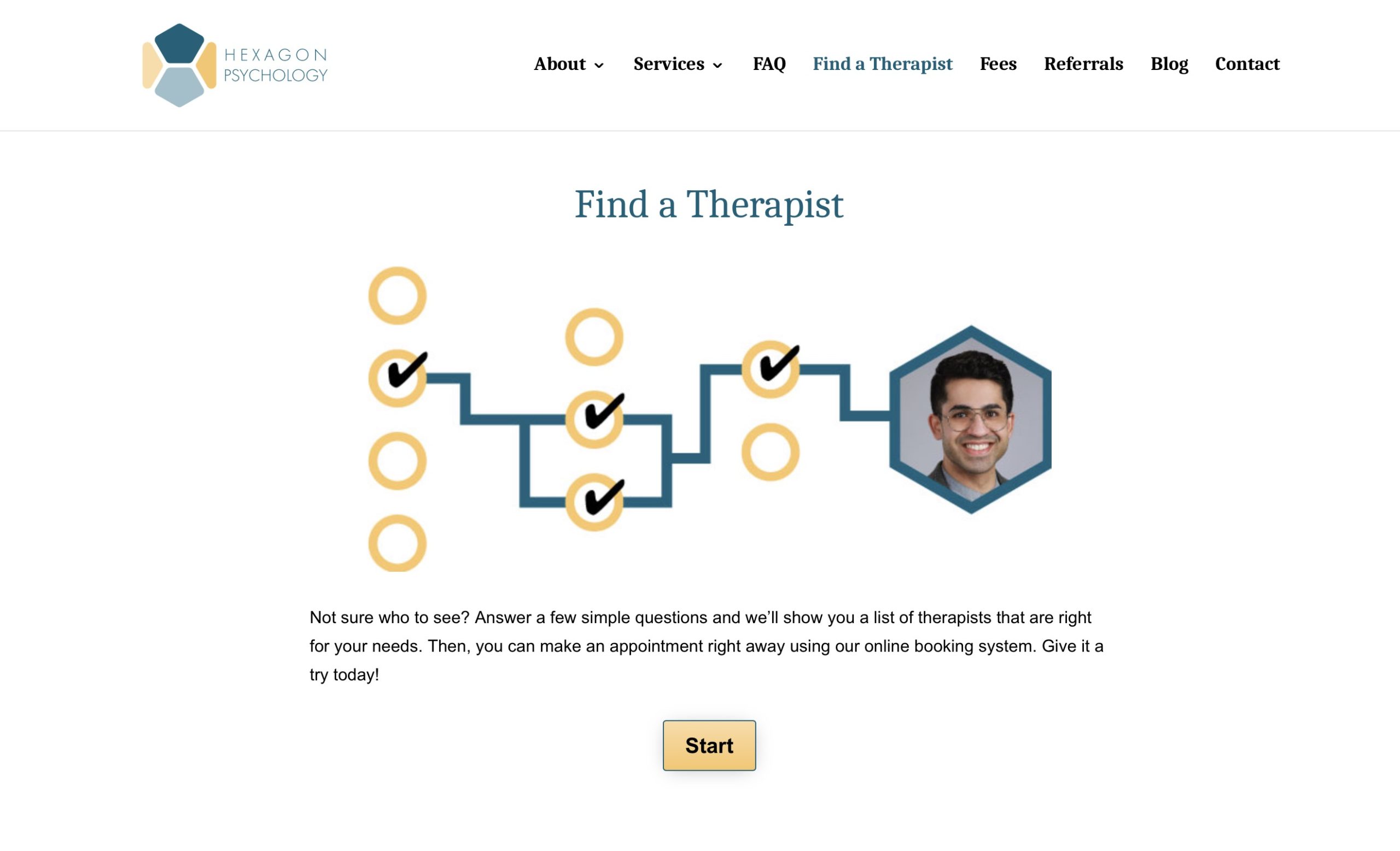 It started with a request for an interactive quiz to help clients choose the right counsellor. But it ended up as a complete next-level redesign that brought playful yet professional polish to the client experience.